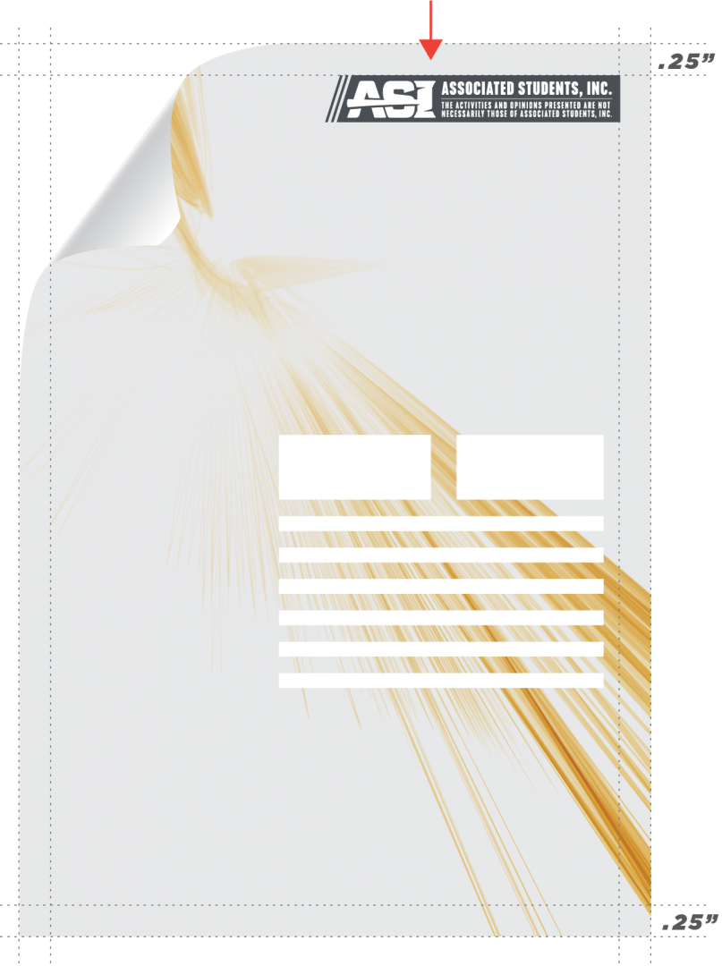 • The ASI Club & Org logo should be place at either the upper or lower right corner of the publication.