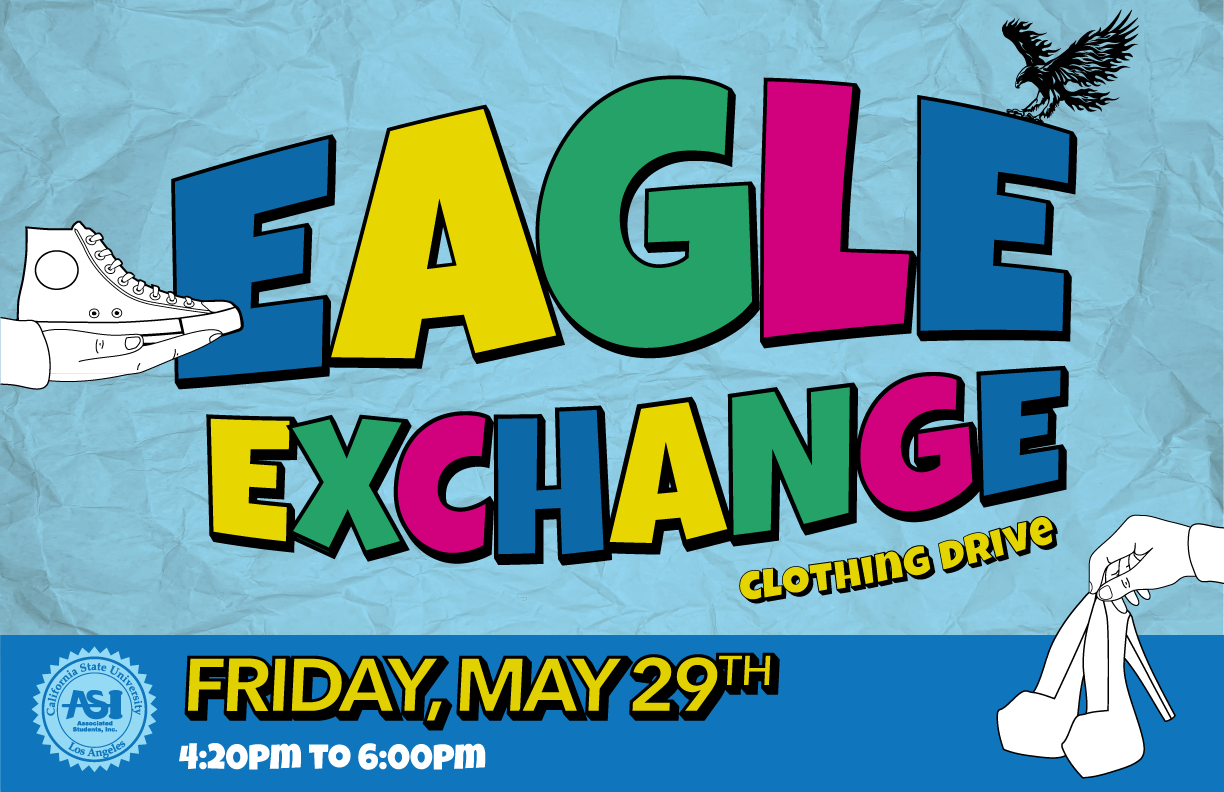 Do you have extra, quality clothing lying around in your bedroom? Stop by the Eagle Exchange and trade your clothes for something you'd like. Any leftover clothes will be donated to the Los Angeles Salvation Army.